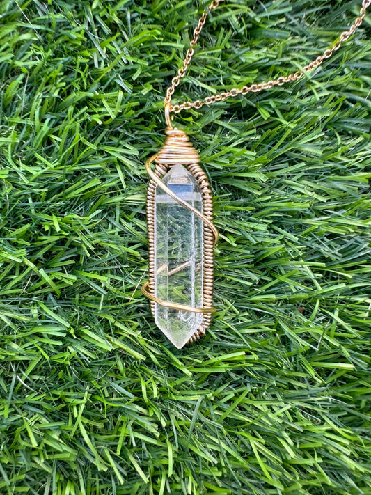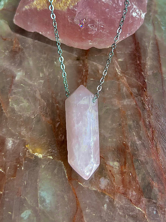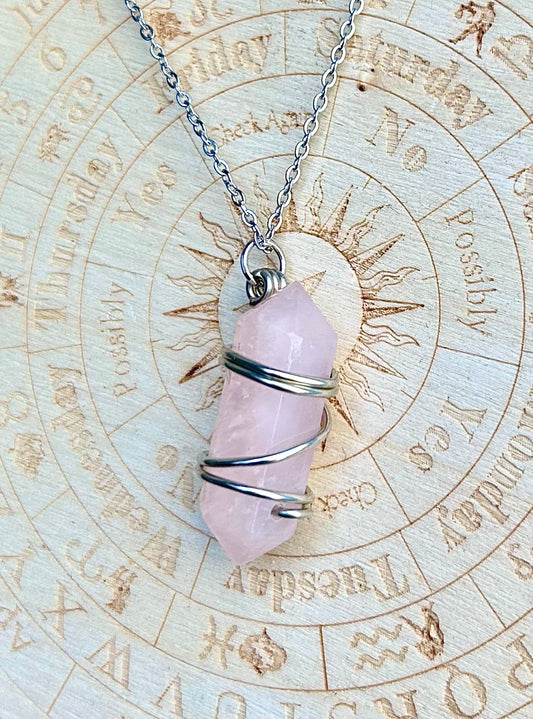 'Wrapped Rose Quartz Crystal Chain Necklace'